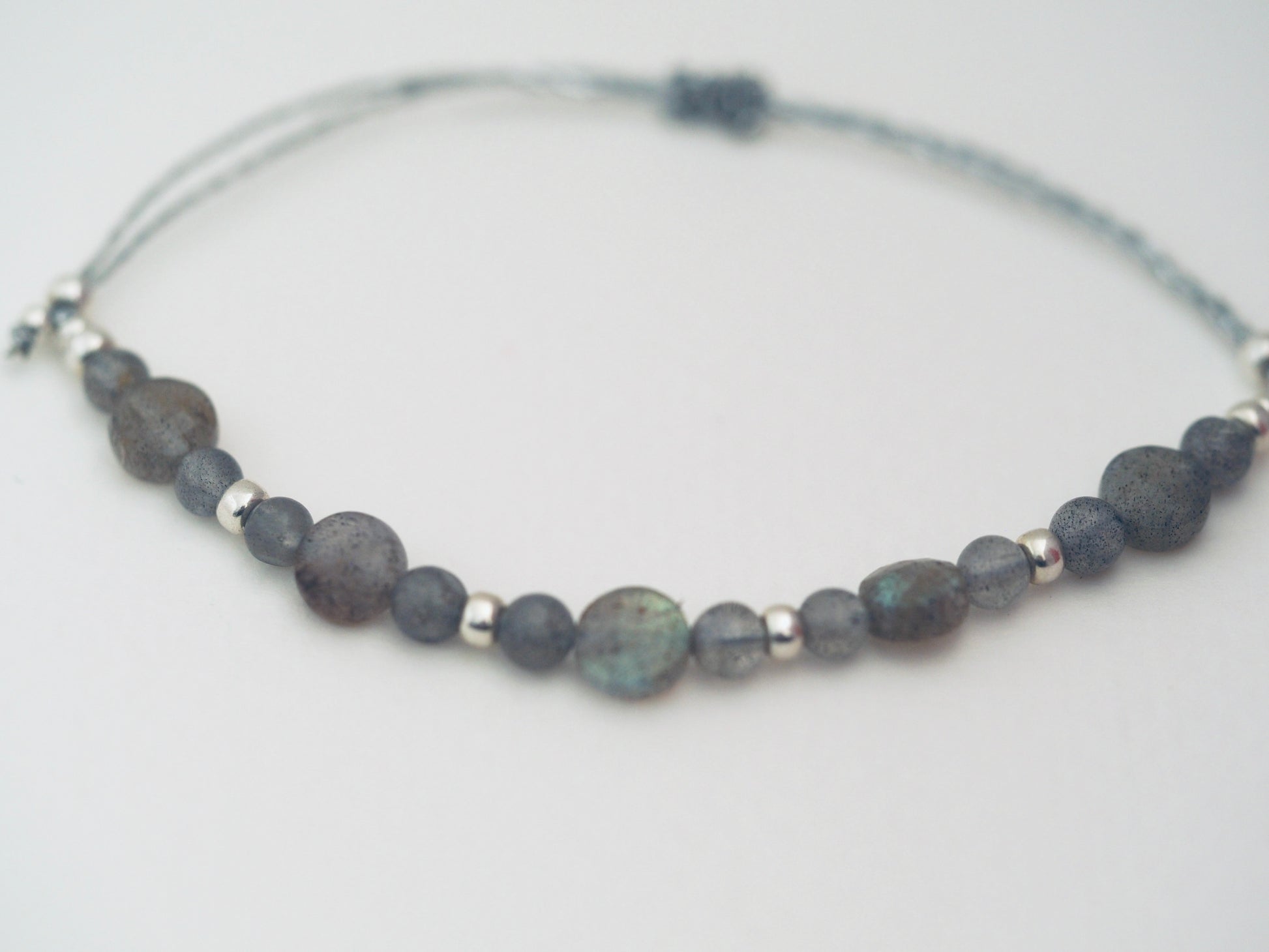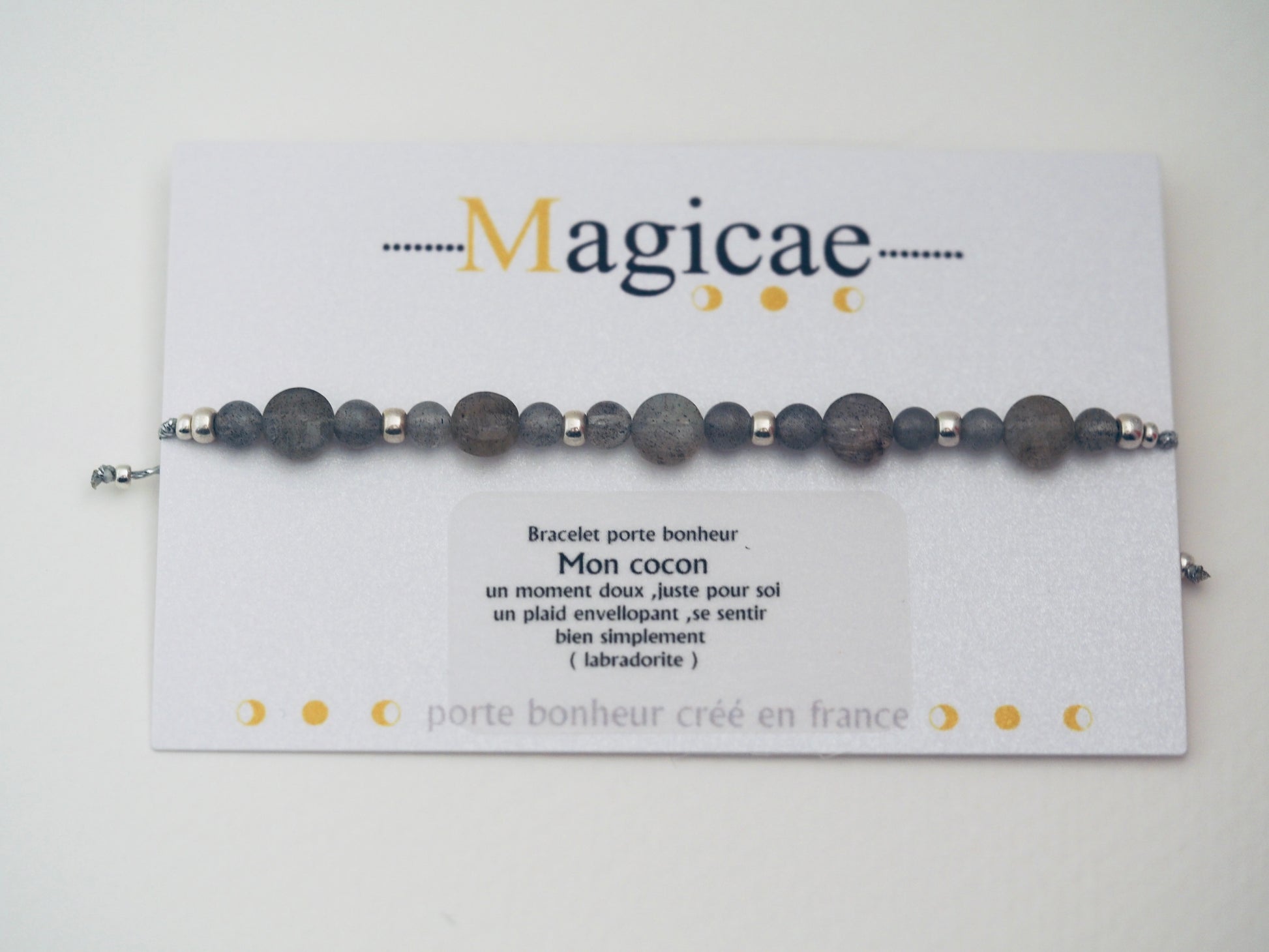 Son attache est réglable ( macramé) avec 2 perles pour rabattre les fils